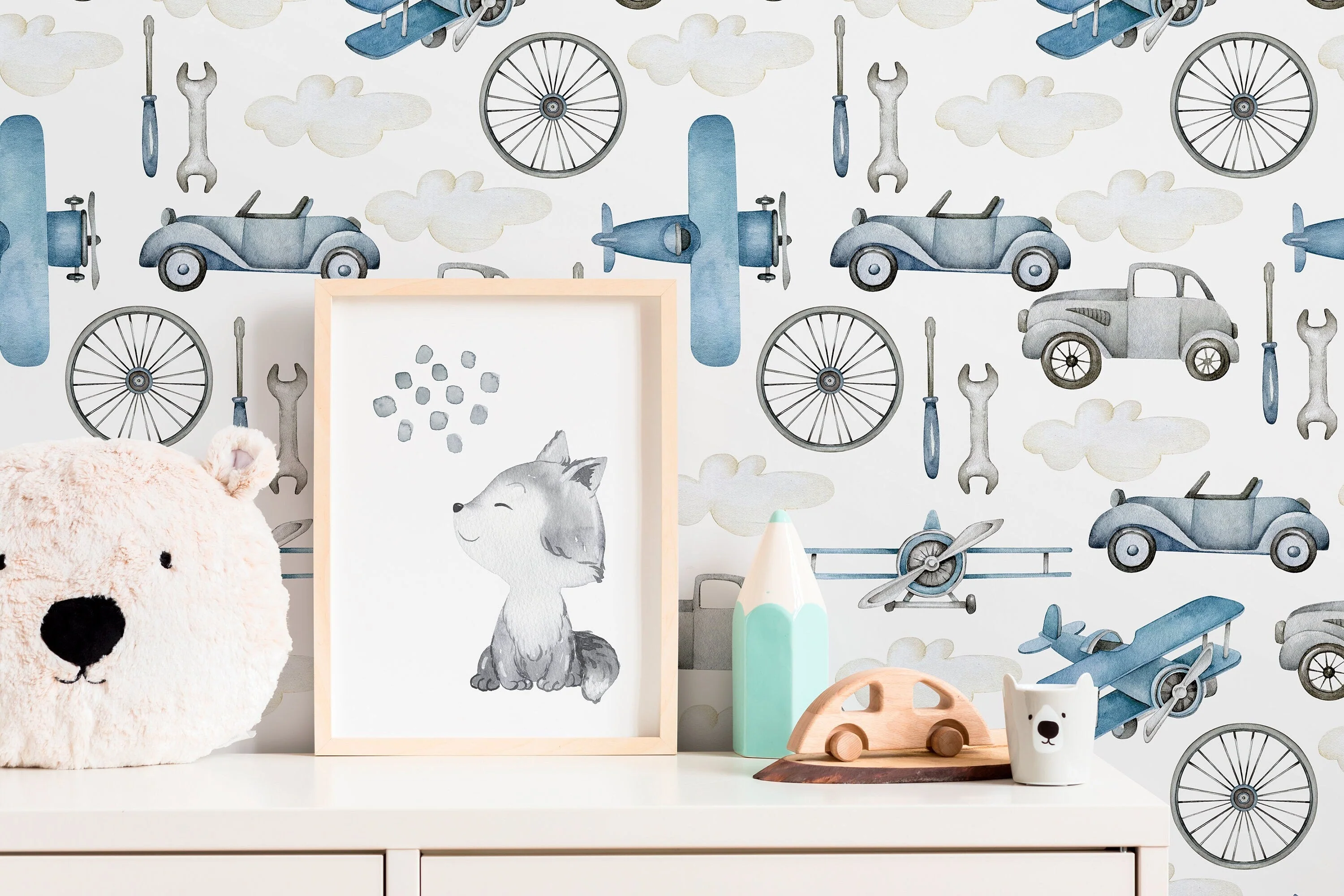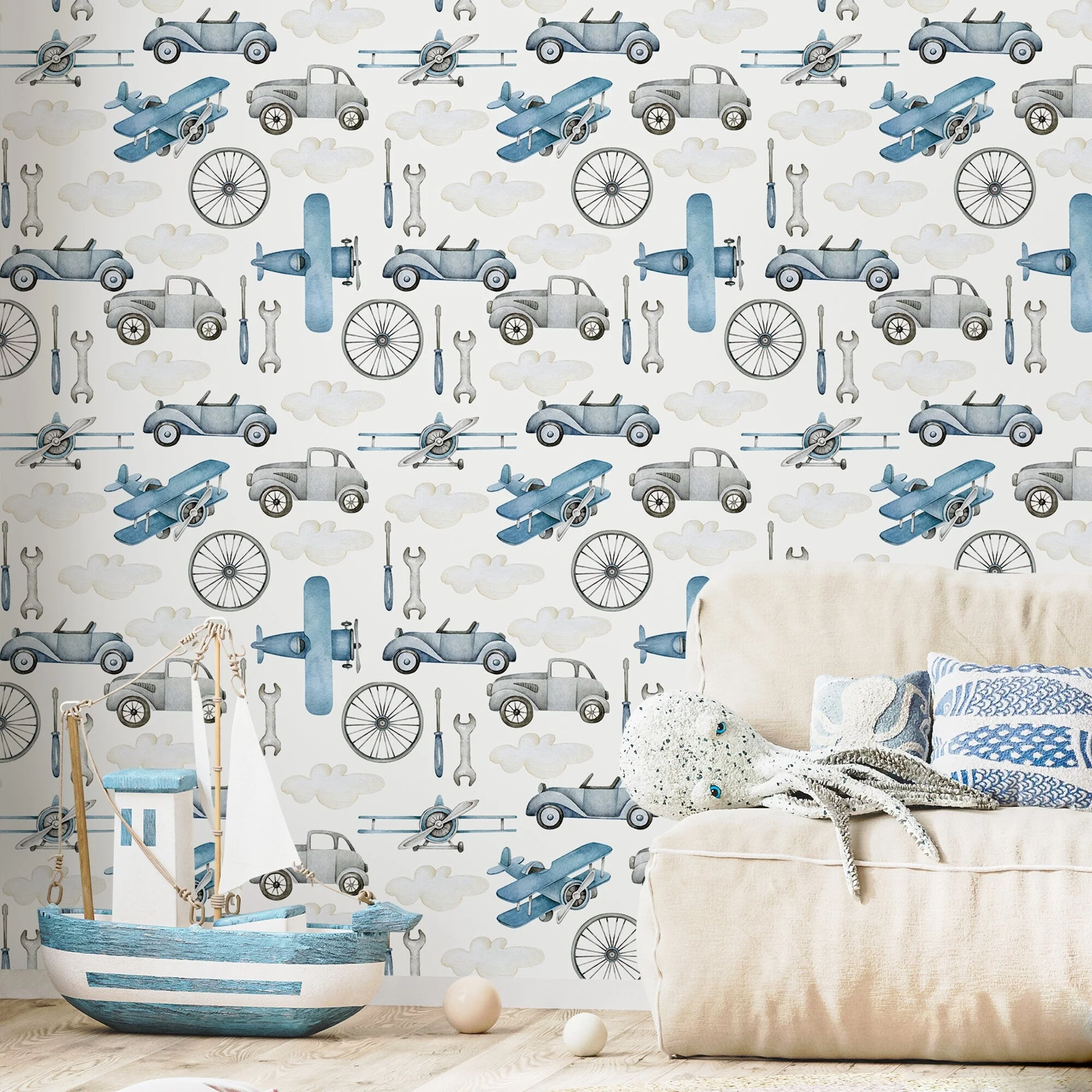 Ondecor Airplanes and Cars Peel and Stick Removable Wallpaper - D527