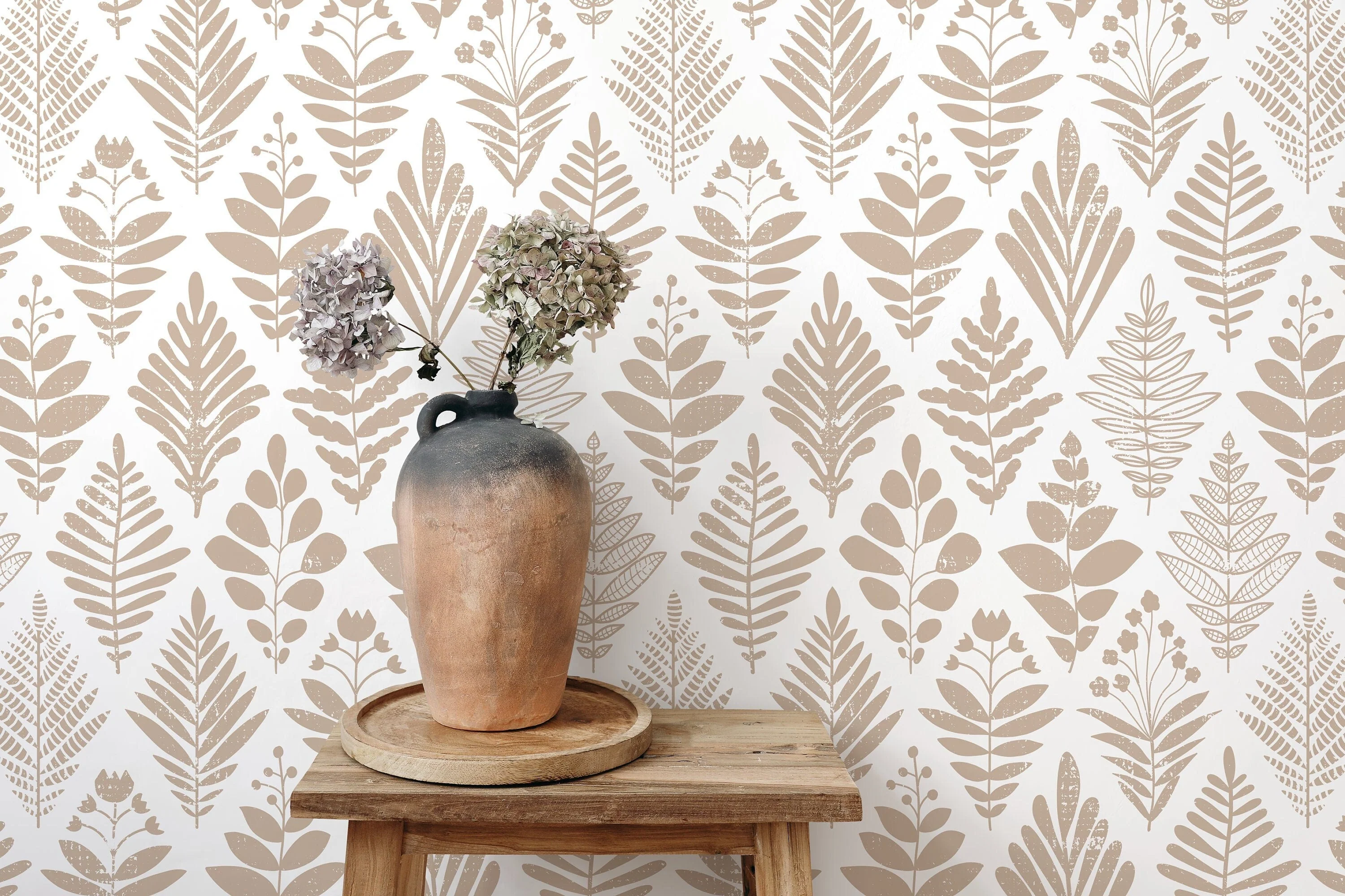 Ondecor Neutral Boho Leaf Wallpaper / Peel and Stick Wallpaper Removable Wallpaper Home Decor Wall Art Wall Decor Room Decor - D182