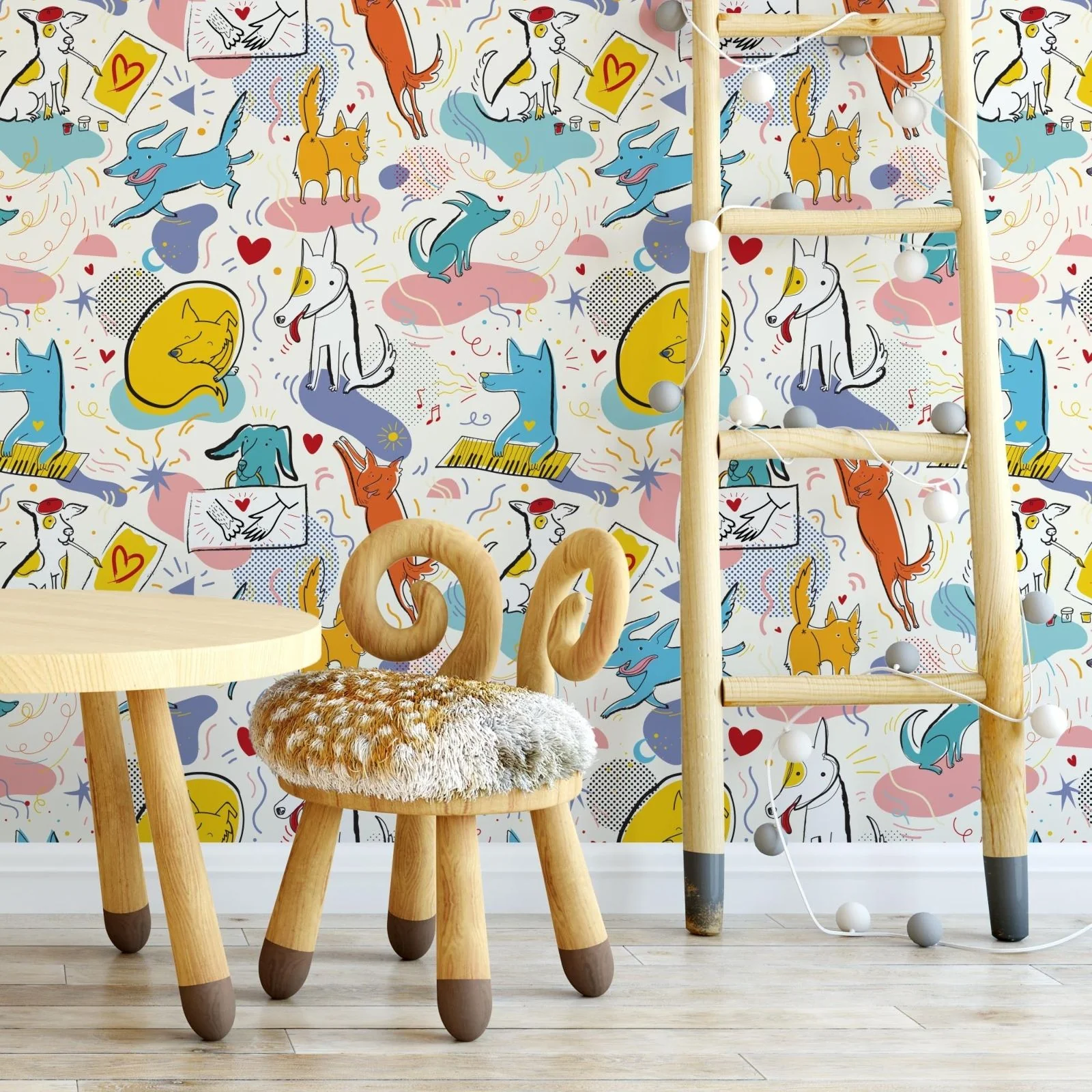 TeepeeJoy Dog Wallpaper Peel and Stick or Traditional - Artful Dogs