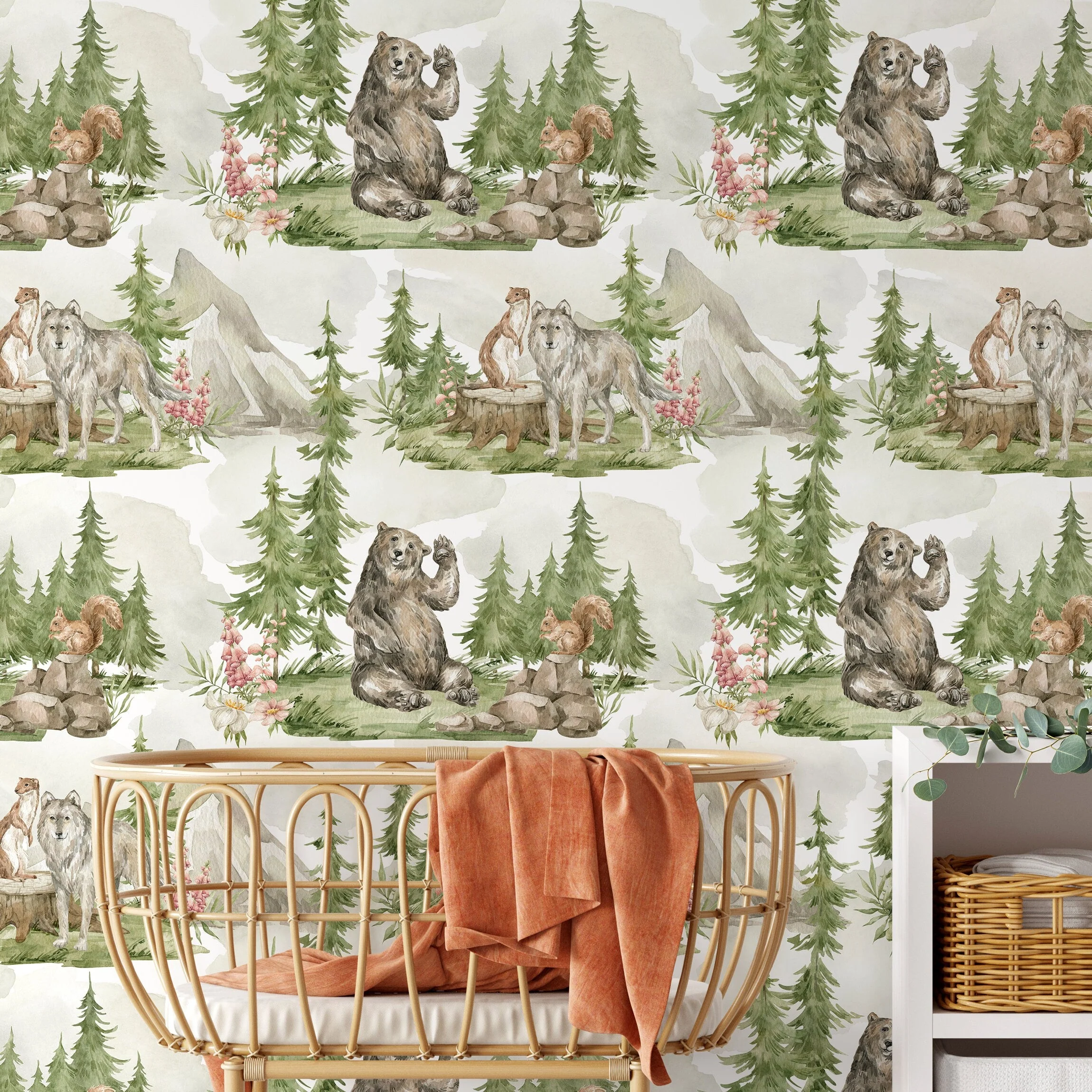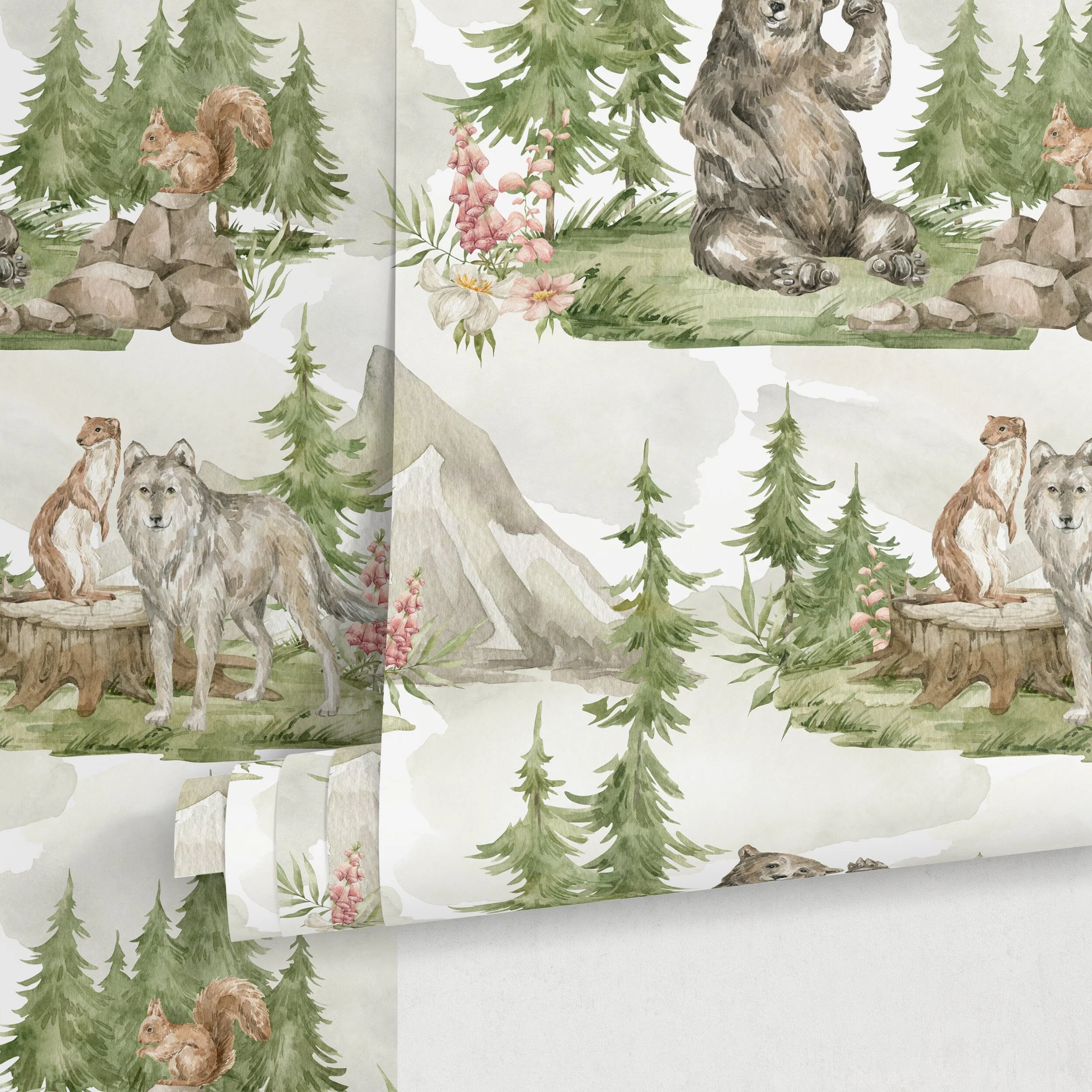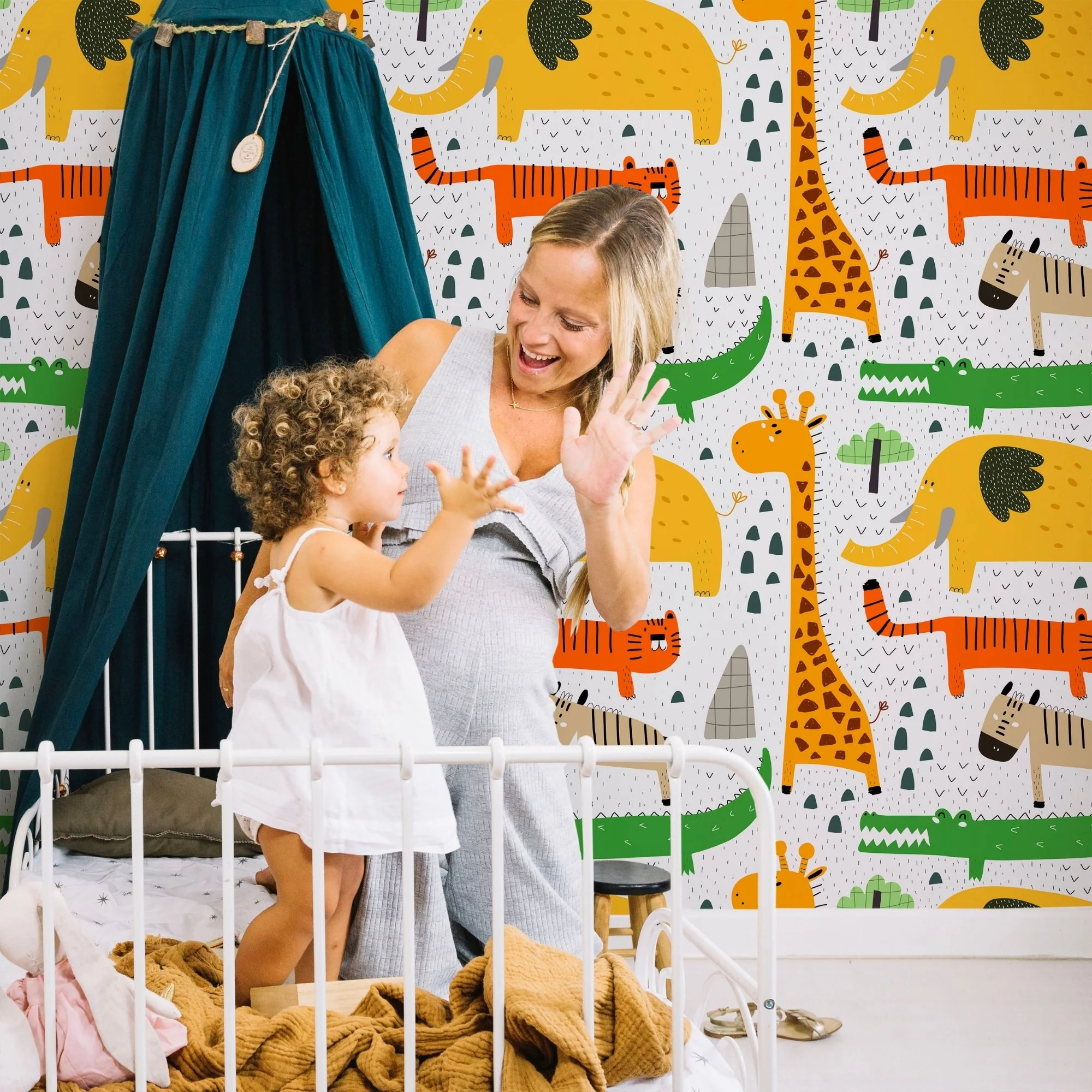 TeepeeJoy Animal Themed Nursery Wallpaper and Kids Room Wallpaper - Living Wild
