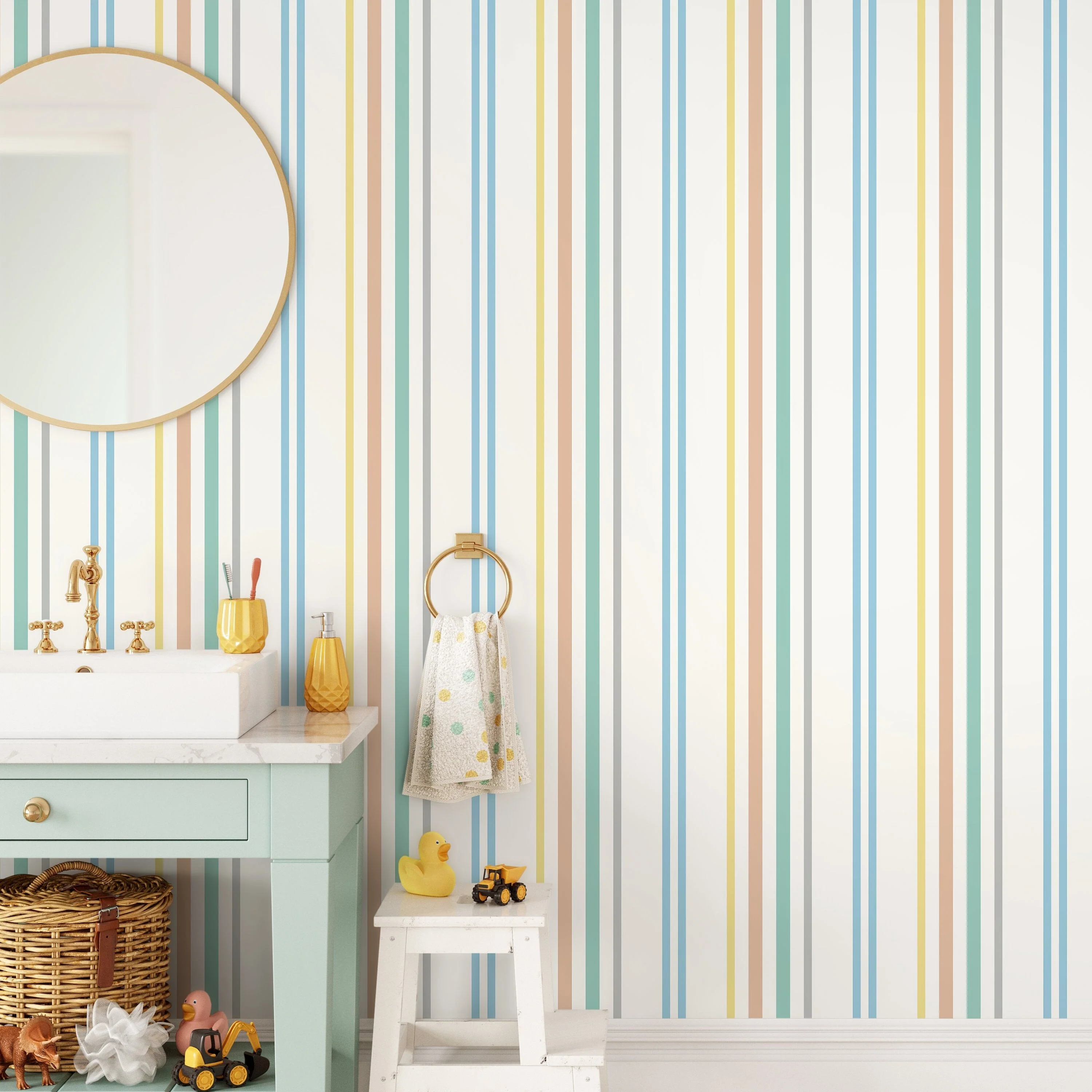 Ondecor Colorful Striped Farmhouse Wallpaper Peel and Stick and Traditional Wallpaper - D786