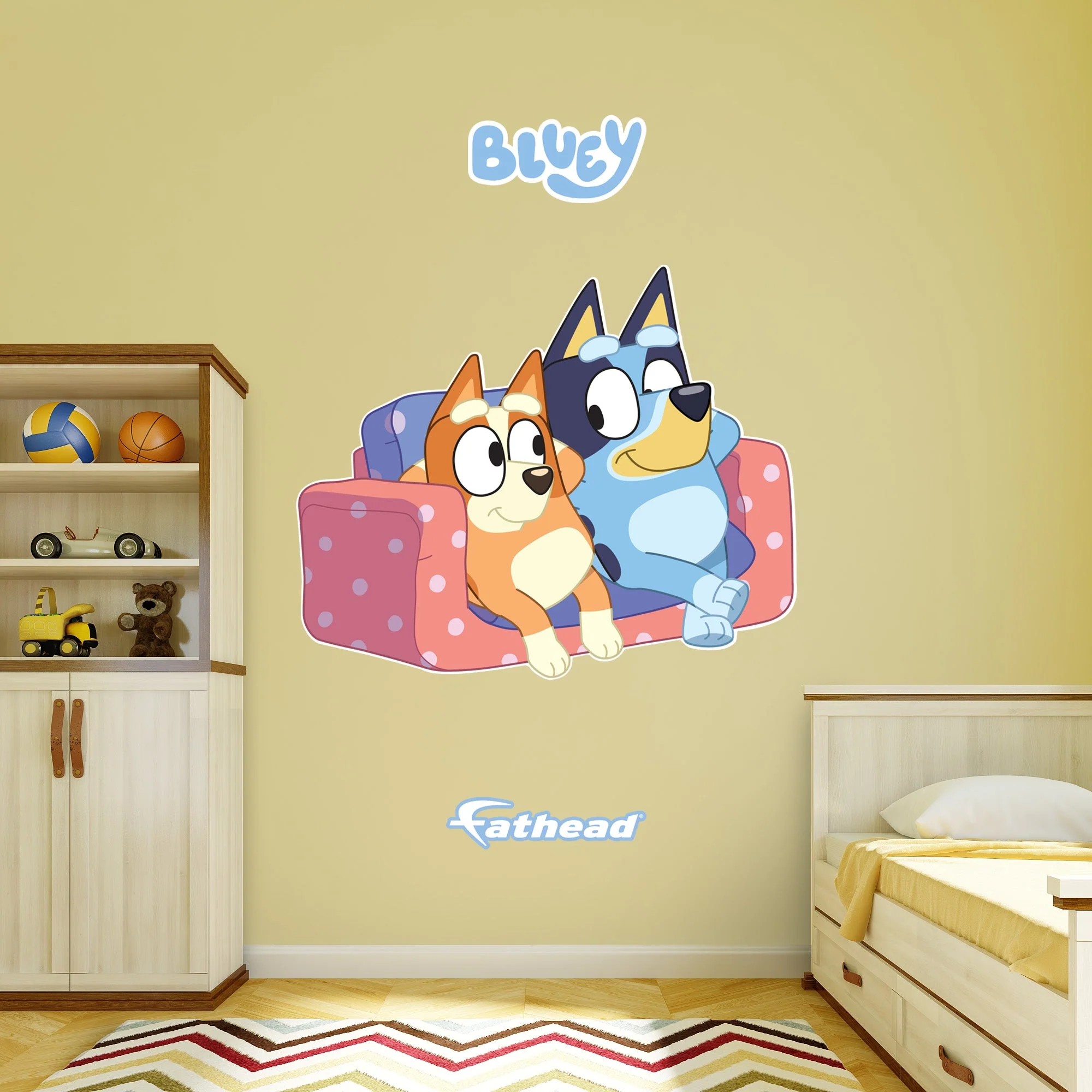 Fathead Bluey: Bluey & Bingo Sisters Lounging Icon - Officially Licensed BBC Removable Adhesive Decal