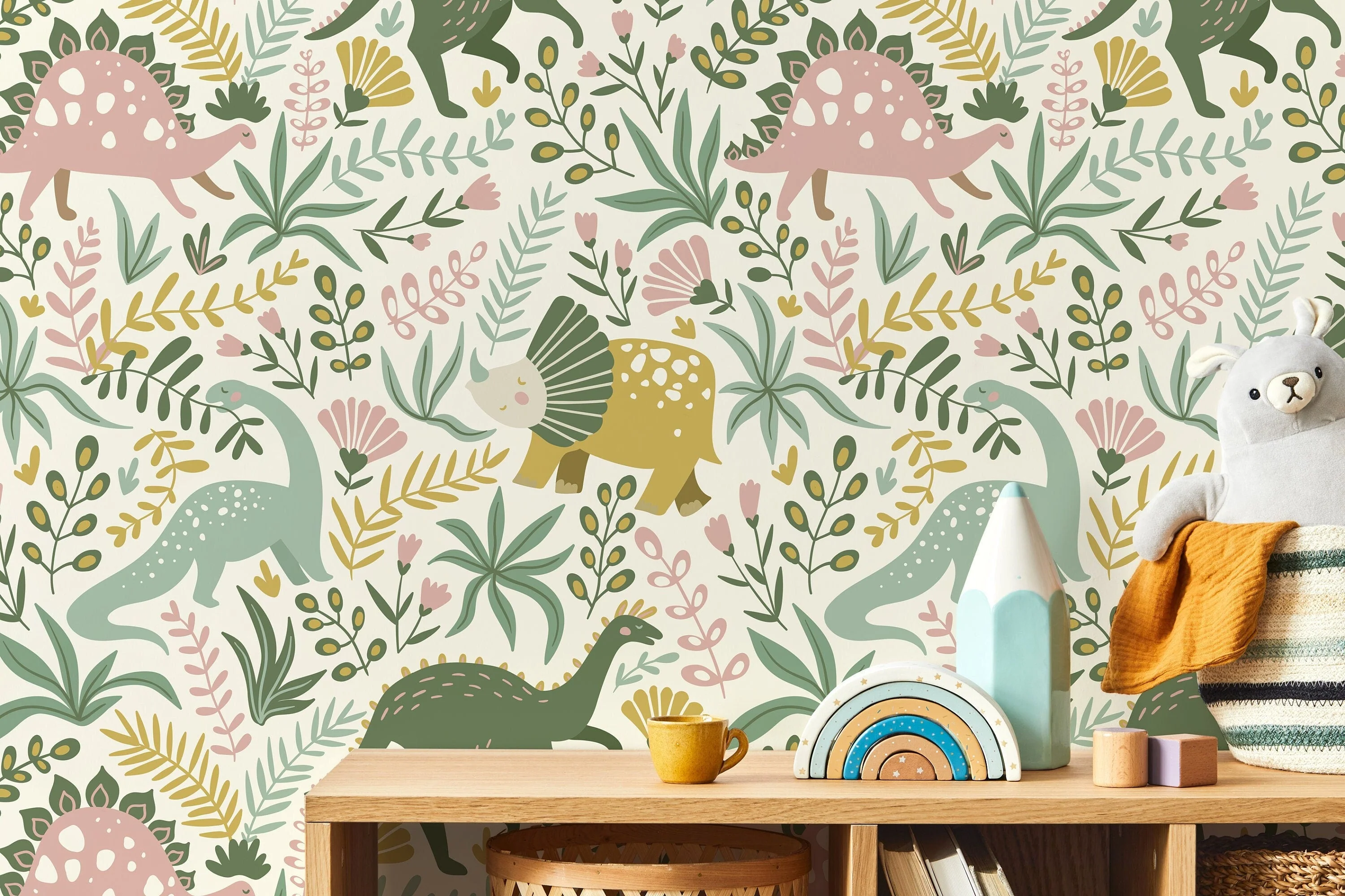 Ondecor Pastel Dinosaurs Peel and Stick Removable Wallpaper Room Decor - D482
