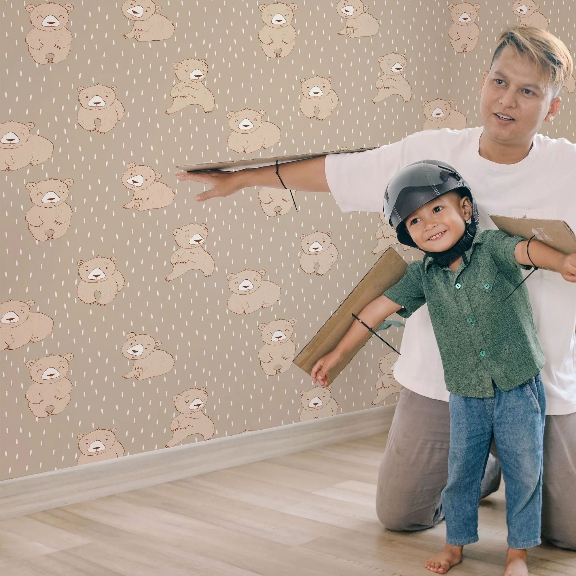 TeepeeJoy Bear Wallpaper for Nursery and Kids Rooms - Teddy's Raindrop Meadow