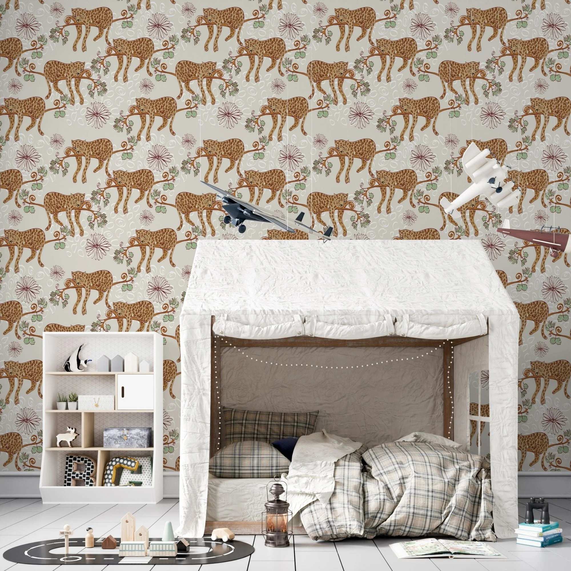TeepeeJoy Cheetah Peel and Stick or Traditional Wallpaper - Botanic Prowl