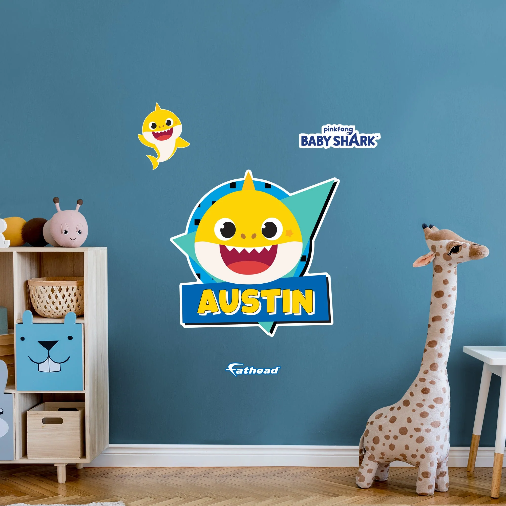 Fathead Baby Shark: Baby Shark Retro Personalized Name Icon - Officially Licensed Nickelodeon Removable Adhesive Decal