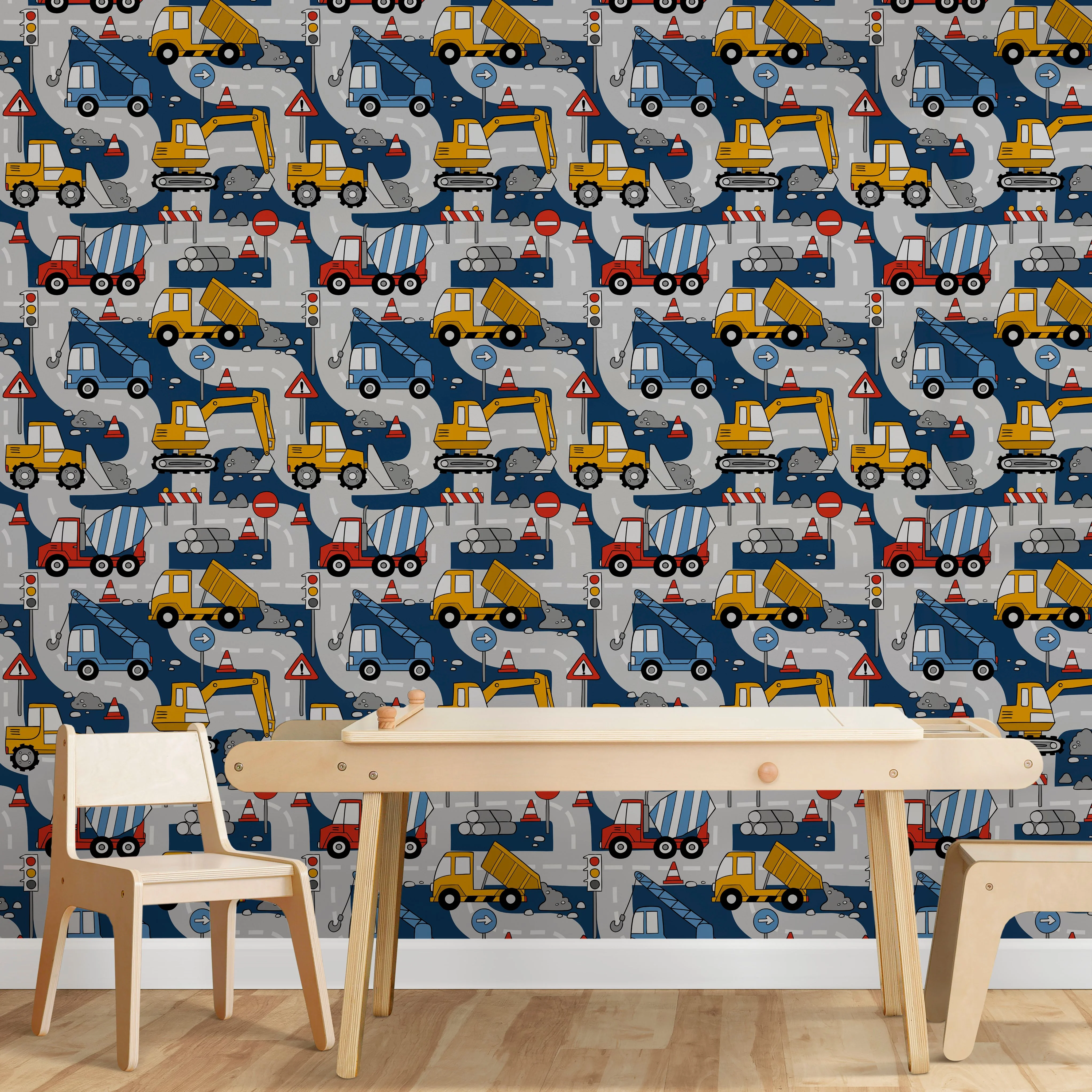 TeepeeJoy Construction Truck Peel and Stick or Traditional Wallpaper - Building Brigade