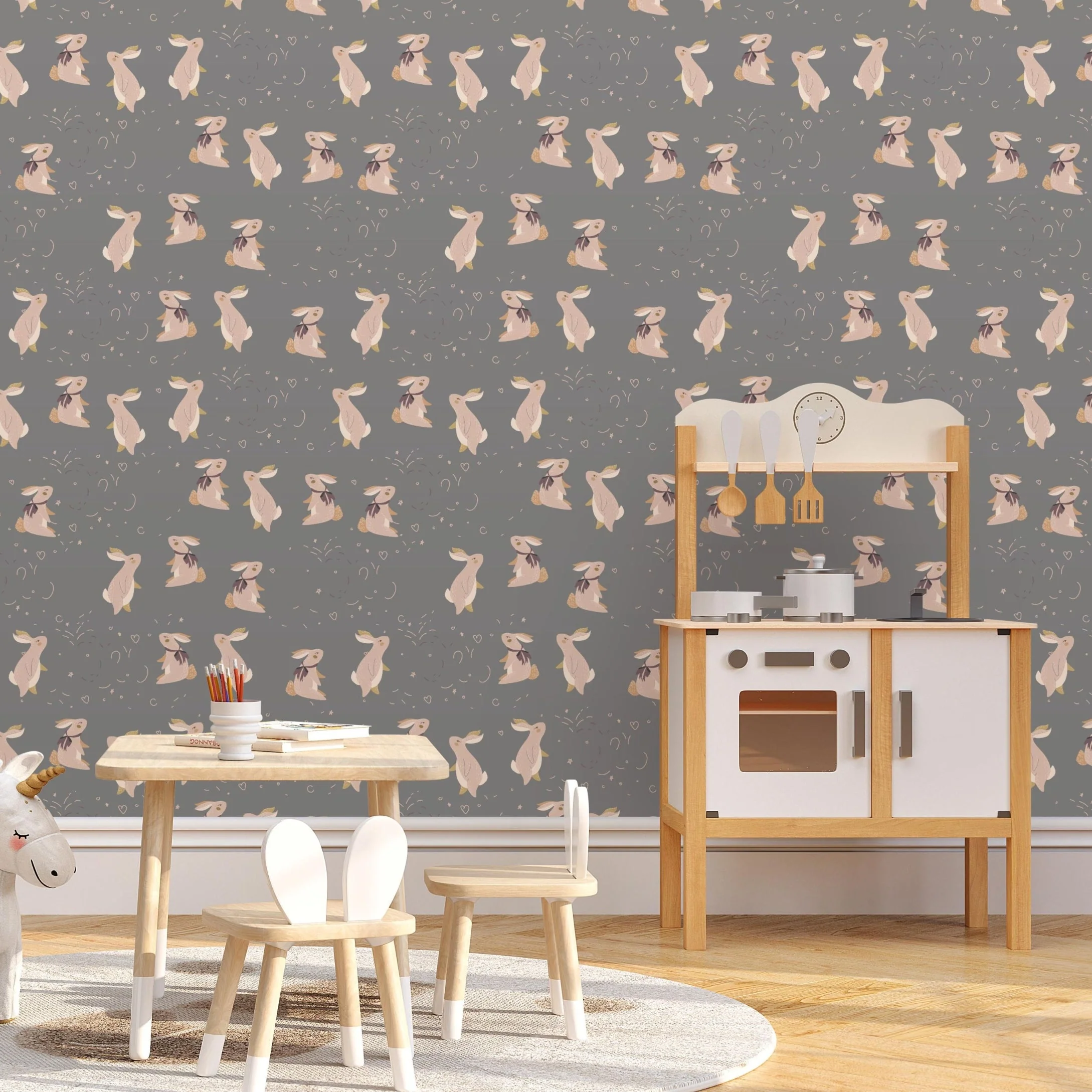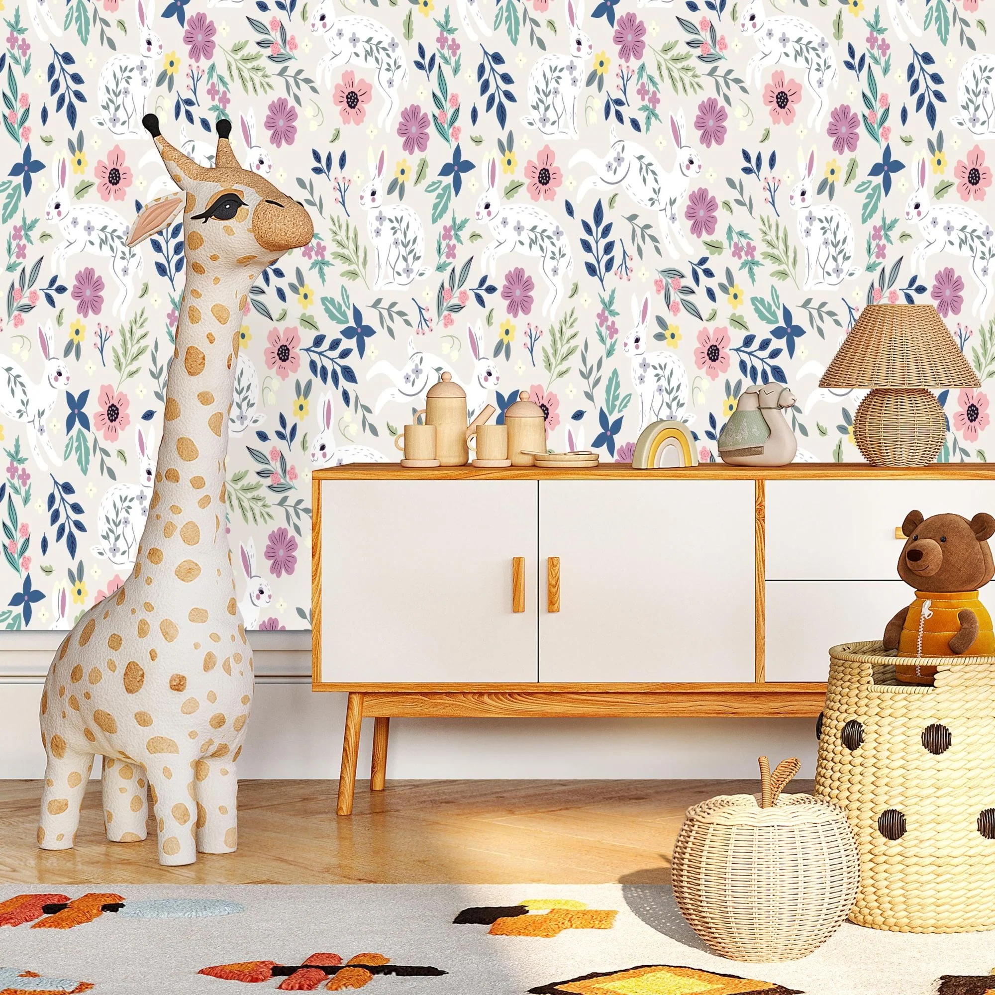 TeepeeJoy Bunny Theme Nursery Wallpaper - Springtime Bunnies