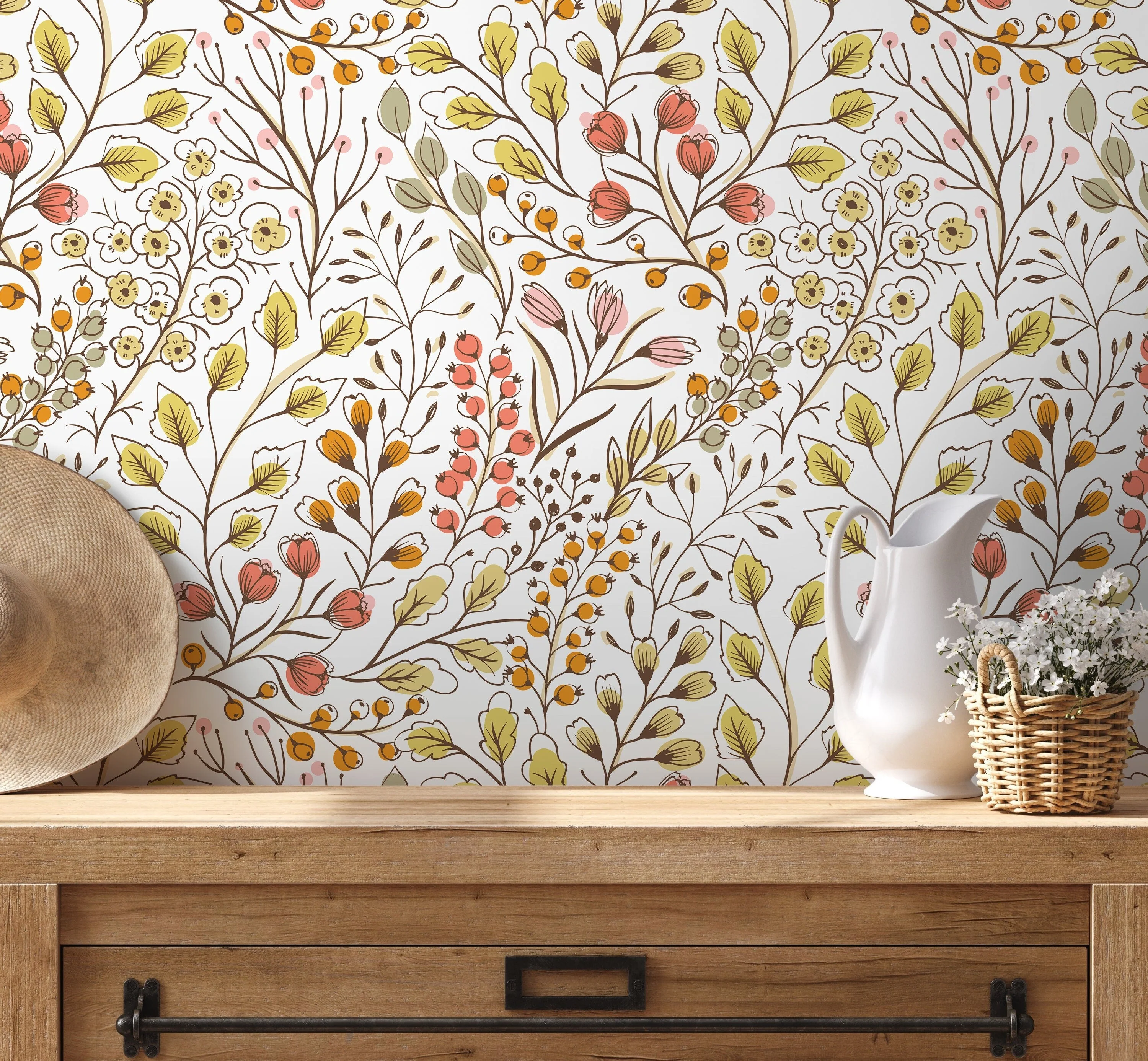 Ondecor Colorful Boho Floral / Peel and Stick Removable Wallpaper Room Decor - D147