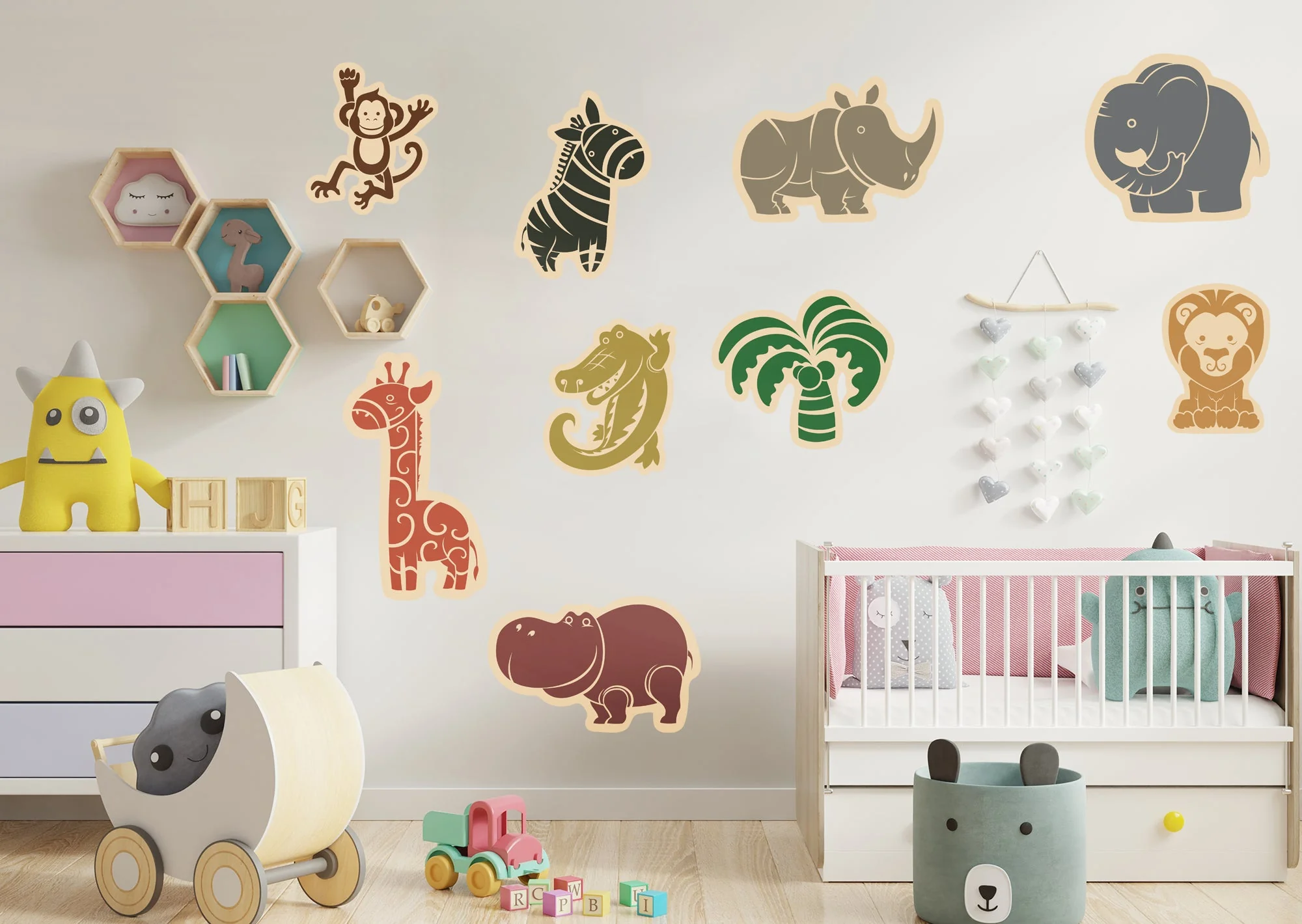 Fathead Jungle Animals (Pink) - Peel & Stick Wallpaper