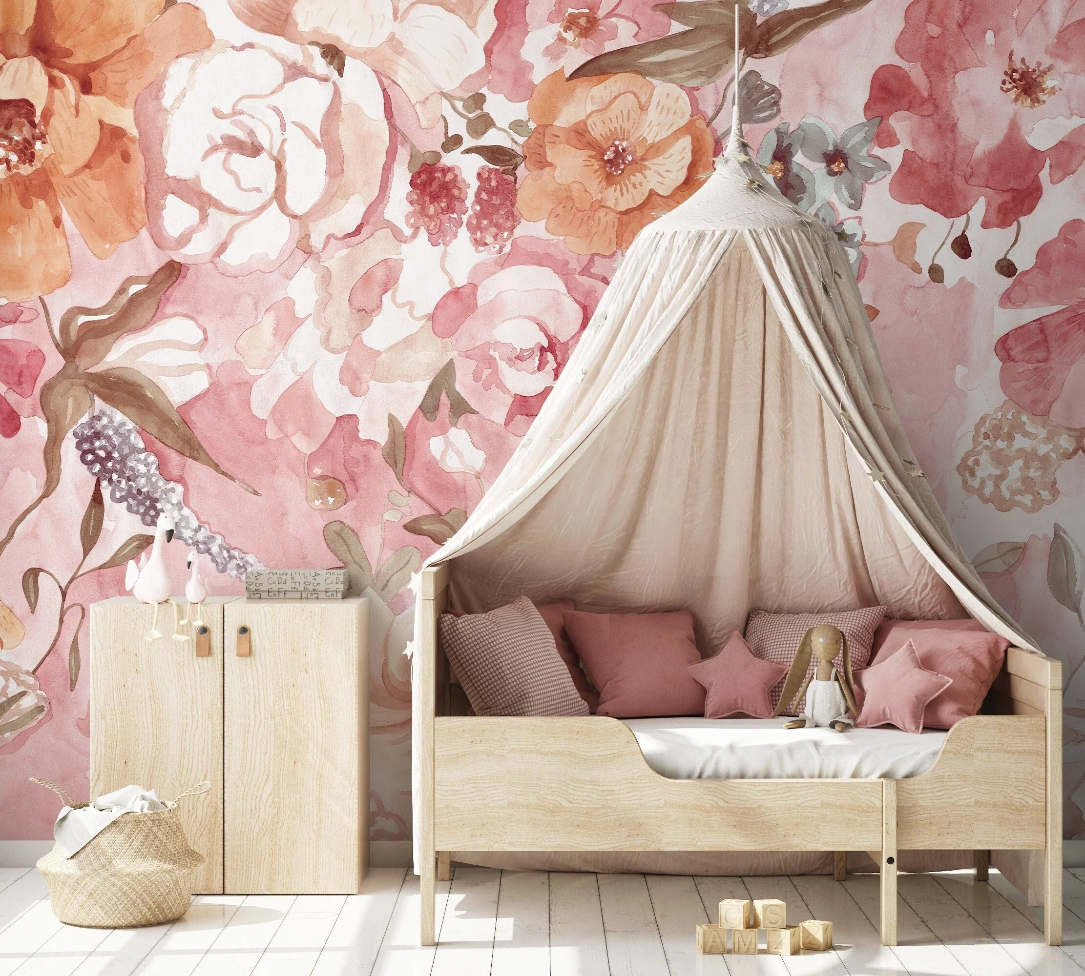 TeepeeJoy Flower Theme Nursery Wallpaper - Blush Meadow Dance