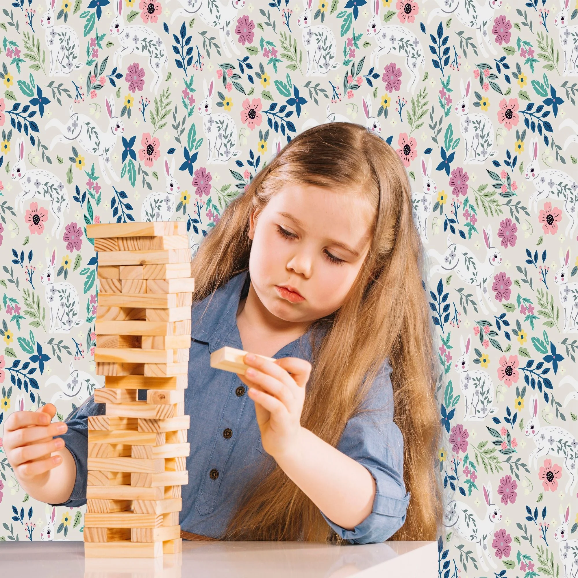 TeepeeJoy Bunny Wallpaper Peel and Stick or Traditional - Mellow Bunnies