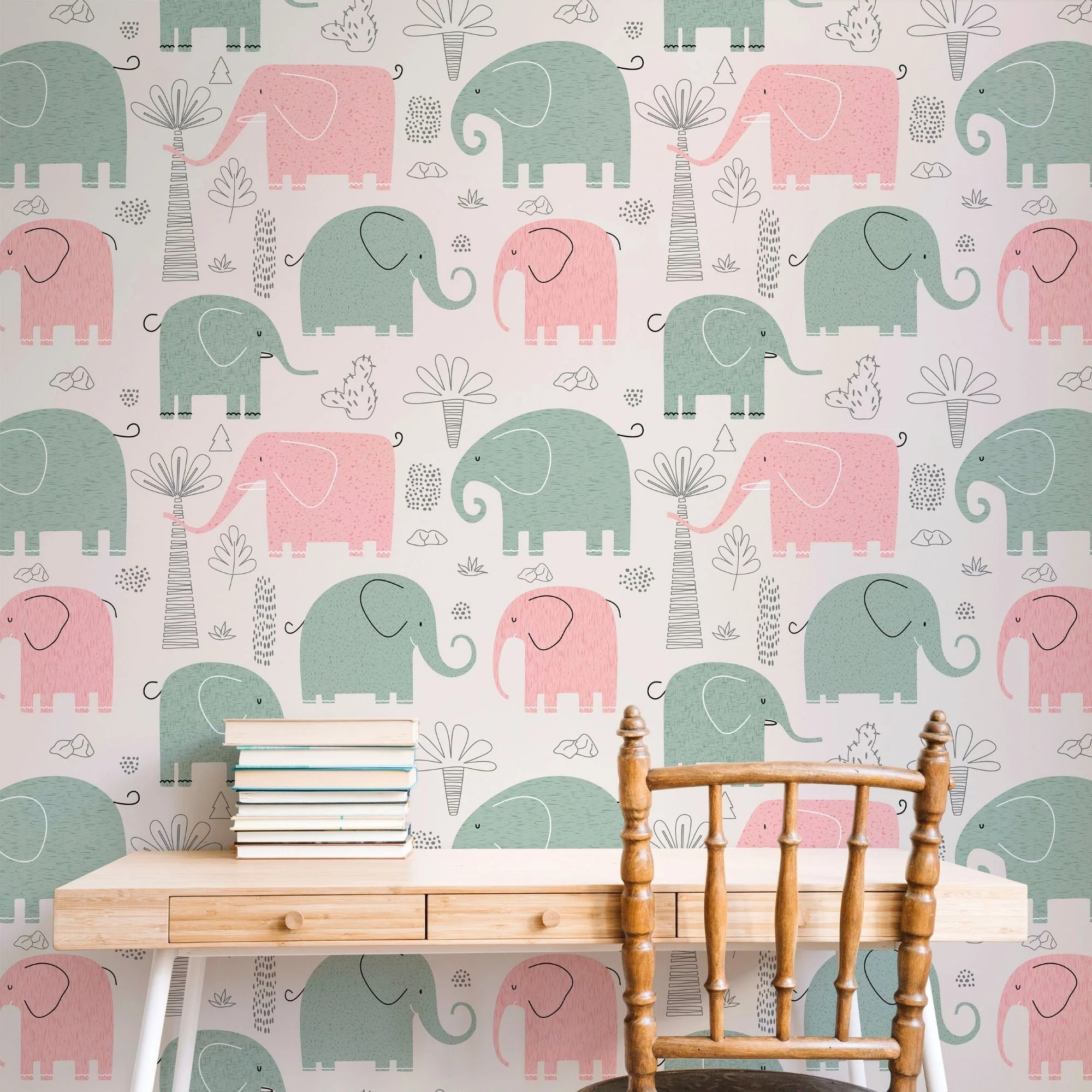 TeepeeJoy Elephant Peel and Stick or Traditional Wallpaper - Elephant Parade